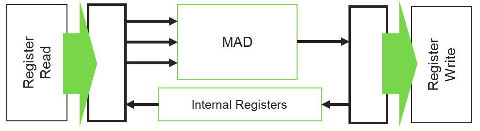 A-Series features an ultra-wide arithmetic logic unit (ALU). This 128-wide design, simplified compared to previous generation architectures, enables greater parallelism for up to four times more operations per clock. Compiler optimisations ensure maximum utilisation resulting in a massive increase in performance per millimetre and greatly improved power efficiency.